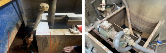 現(xiàn)場檢查發(fā)現(xiàn),該處理廠廢水排放口pH自動分析儀被人為拔出放在邊上裝滿清水的塑料瓢內(nèi),廢水處理設(shè)施末端沉淀池內(nèi)有一根自來水管對廢水進(jìn)行稀釋,加藥桶未在加藥。經(jīng)環(huán)境監(jiān)測人員現(xiàn)場監(jiān)測,沉淀池、排放口處pH值均超標(biāo),而塑料瓢內(nèi)清水的pH值為達(dá)標(biāo),該行為涉嫌自動監(jiān)控數(shù)據(jù)弄虛作假。同時發(fā)現(xiàn),廢氣處理設(shè)施第一級噴淋塔配套的水箱已干,未在噴淋,第二級噴淋塔正常運行,該行為涉嫌不正常運行大氣污染防治設(shè)施。