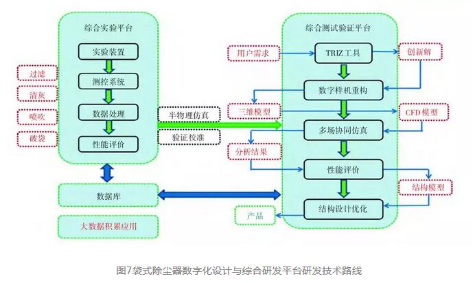研發(fā)平臺(tái)解決了袋式除塵器產(chǎn)品創(chuàng)新的行業(yè)共性關(guān)鍵技術(shù),包括:基于國際先進(jìn)的TRIZ的集成創(chuàng)新技術(shù)、多場(chǎng)仿真技術(shù)、產(chǎn)品快捷和定制優(yōu)化技術(shù)、數(shù)字化樣機(jī)模型及重構(gòu)技術(shù)、數(shù)字化仿真測(cè)試評(píng)價(jià)技術(shù)及組態(tài)化實(shí)驗(yàn)驗(yàn)證技術(shù)等,可實(shí)現(xiàn)開發(fā)袋式除塵器新產(chǎn)品變結(jié)構(gòu)、新工藝、新型濾材等的綜合測(cè)試實(shí)驗(yàn)。利用平臺(tái),我們已經(jīng)完成了不同基型的袋式除塵器分風(fēng)、過濾及清灰等性能的數(shù)值模擬計(jì)算、數(shù)據(jù)分析、仿真測(cè)試及實(shí)驗(yàn)驗(yàn)證,獲取了復(fù)雜需求前端對(duì)應(yīng)的數(shù)據(jù)規(guī)律。